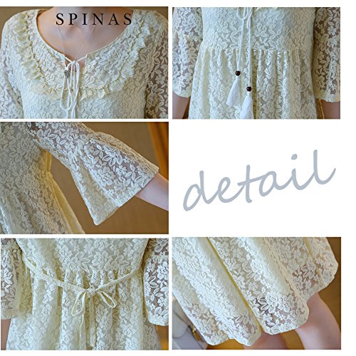 Spinas(スピナス) マタニティ ウェア ワンピース タッセル レース 花柄 全3色(ピンク、イエロー、ブルー)