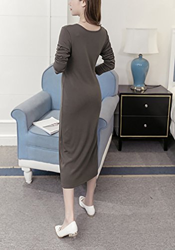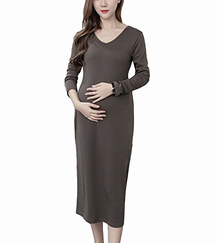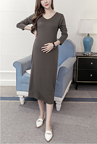 Spinas (スピナス) マタニティ レディース 長袖 美ライン Vネック ワンピース ロング ストレッチ 秋 全4色(ブラック/コーヒー/アーミーグリーン/グレー)