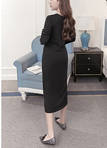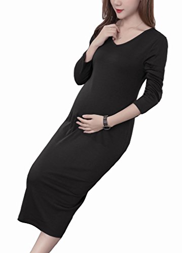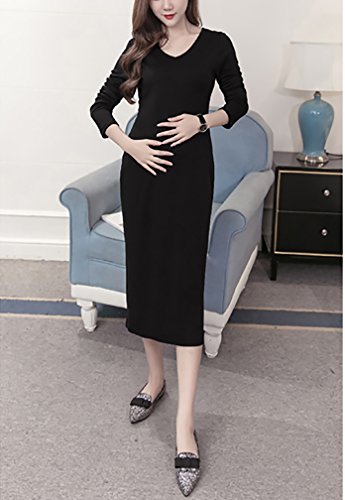 Spinas (スピナス) マタニティ レディース 長袖 美ライン Vネック ワンピース ロング ストレッチ 秋 全4色(ブラック/コーヒー/アーミーグリーン/グレー)