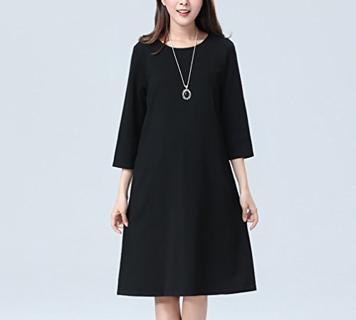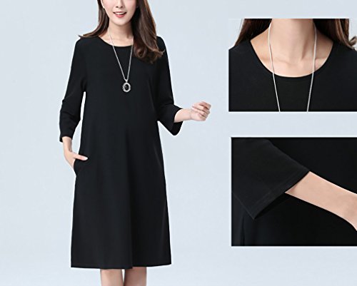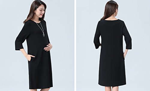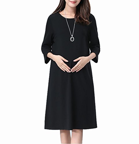 Spinas (スピナス) マタニティ レディース 七分袖 Aライン ブラック ジャージー ワンピース ひざ丈 フォーマル にも きれい ワンピース