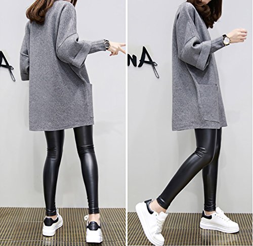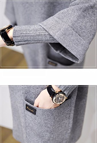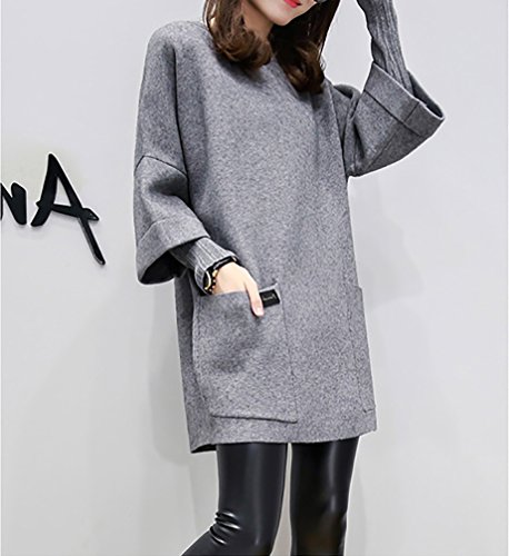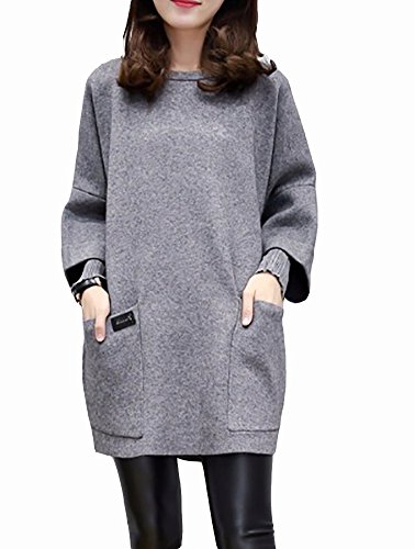 Spinas (スピナス) マタニティ レディース 七分袖 のような デザイン が カワイイ 重ね着 風 グレー ニット チュニック ワイド スリーブ 秋 冬