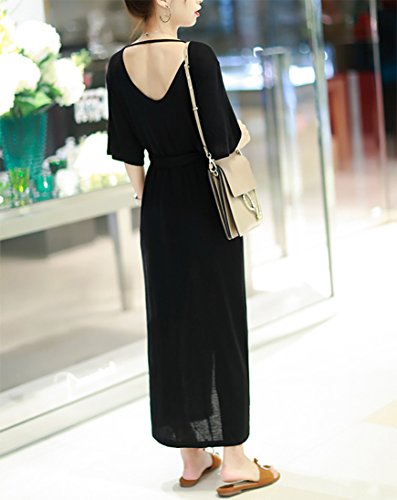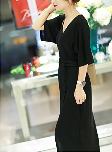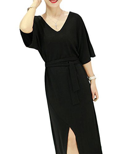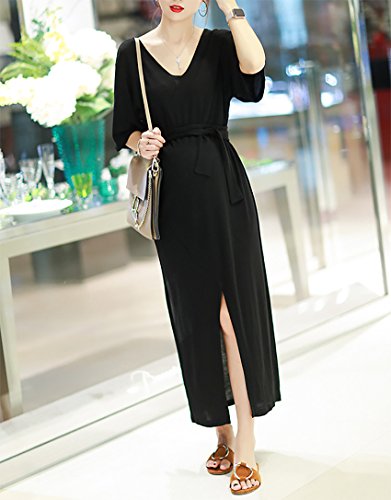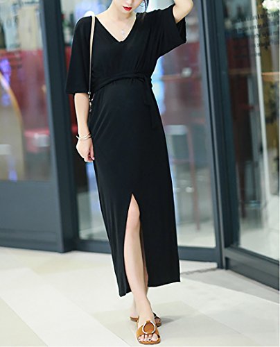 Spinas (スピナス) マタニティ レディース リゾート に お出かけ に 着たい 美しい Vネック デザイン ロング ワンピース フロント スリット 入り 5分袖 ドレス 全2色(ピンク/ブラック)