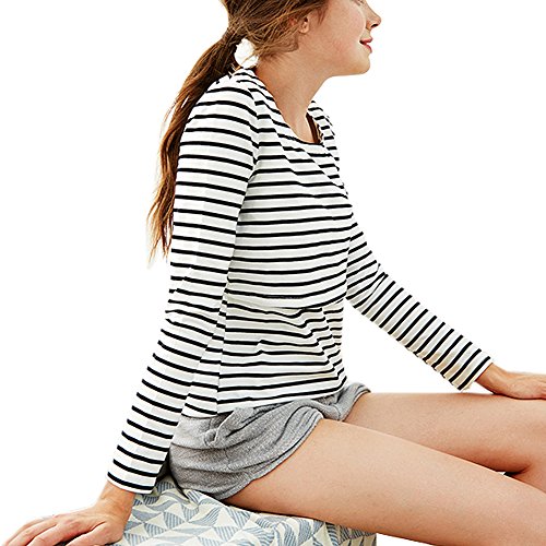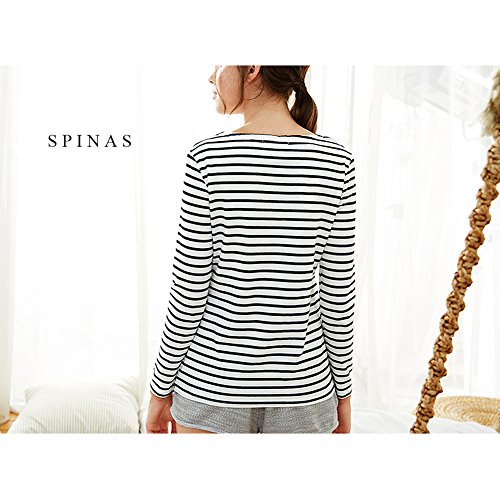Spinas(スピナス) 授乳服 ボーダー トップス 長袖 カットソー シンプル 着回し力が高い 産後 用 産後用 授乳口 マタニティ クロスオープン 4カラー (オフホワイト×ブラック、XL)