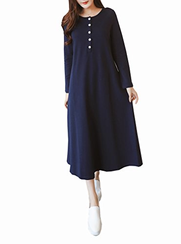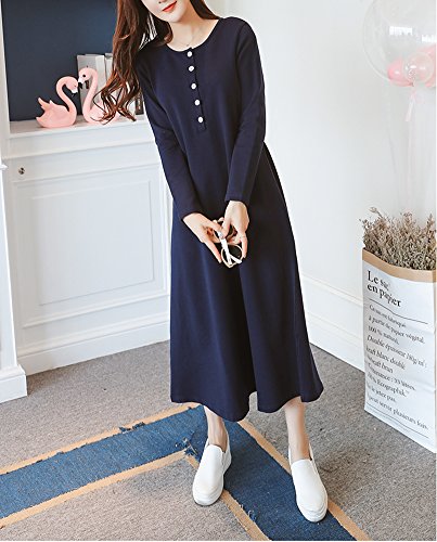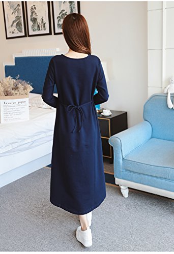 Spinas (スピナス) レディース マタニティ 産後にも使える ロング 丈 ワンピース 裏起毛 授乳 長袖 無地 前ボタン 腰紐 シンプル デザイン 春 秋 冬 全2色 (ライトグレー/ネイビー)