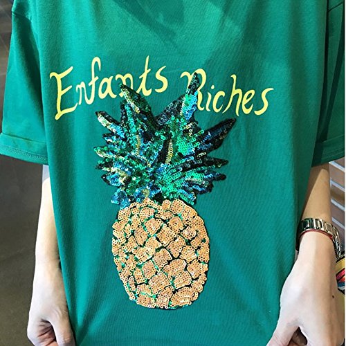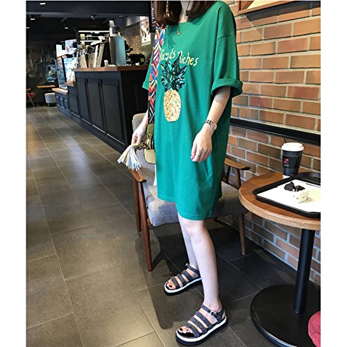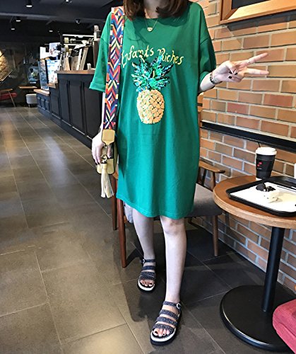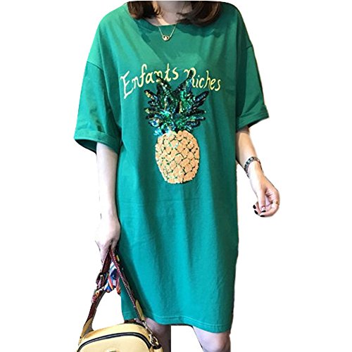 スパンコールのパイナップルがお洒落なアクセント☆ひざ上丈のTシャツワンピースです