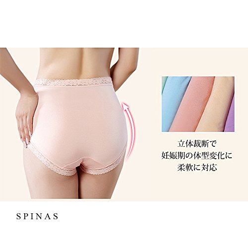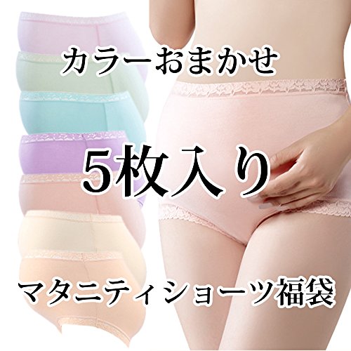 Spinas(スピナス) マタニティ ショーツ 5枚セット 福袋 淡い パステル系 カラー チョイスは おまかせ 肌に触れる部分はレース仕様 (フリー)