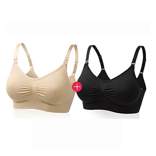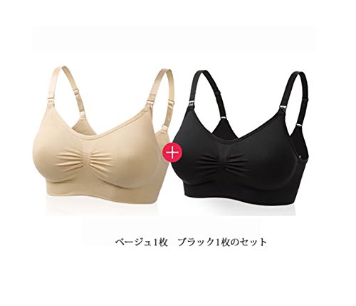 Spinas (スピナス) マタニティ シームレス 授乳 ブラジャー 2枚セット ストレッチ ノンワイヤー バスト アップ カラー 組みあわせ 5パターン(ラベンダー/グレー/ベージュ/ブラック) (L, ベージュXブラック)