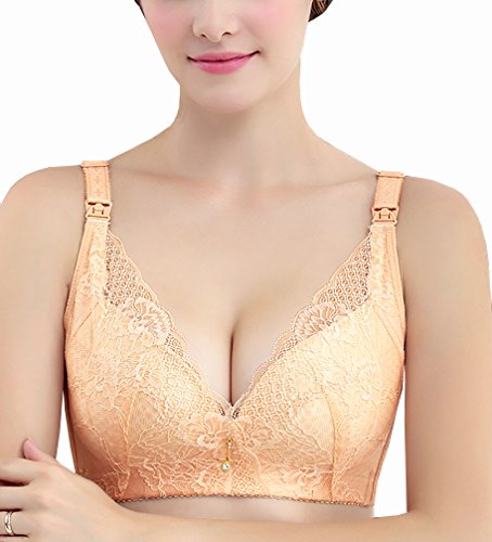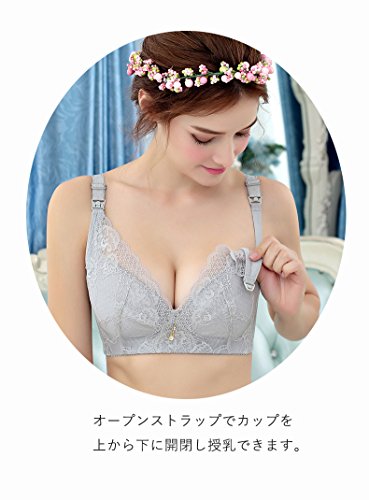 - 揺れるチャームがキュートなVカットセクシーデザインレースマタニティ授乳ブラジャー