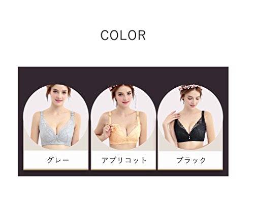 Spinas (スピナス) マタニティ 授乳 オープンストラップ ブラ レース Vカット デザイン ブラジャー ノンワイヤー 揺れる チャーム が かわいい 全3色(アプリコット/グレー/ブラック)