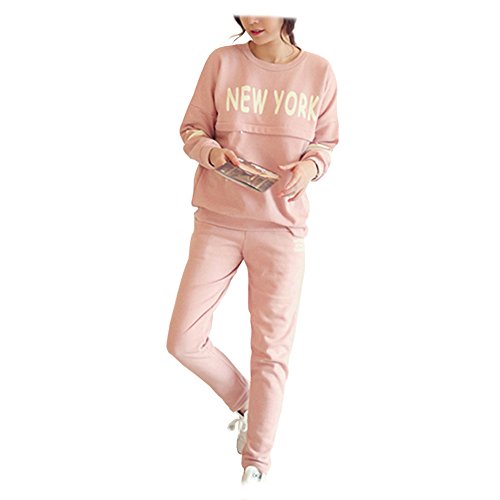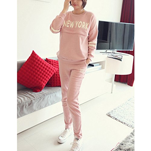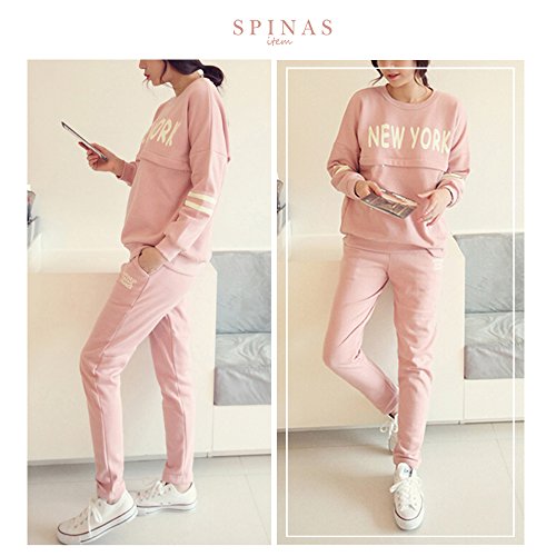 Spinas(スピナス) 綿100%だから肌に優しい! マタニティ ルームウェア 授乳口付き セットアップ スウェット (ピンク) (XL)