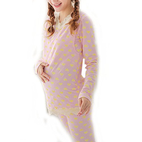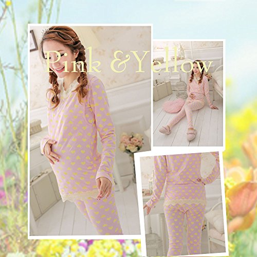 Spinas(スピナス)マタニティ パジャマ 産前から産後まで着用できる授乳口付きマタニティルームウェアパジャマ 可愛い妊婦さんでいたい! (XL, ピンク&イエロー)