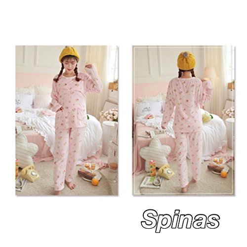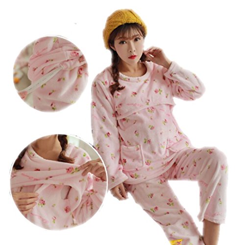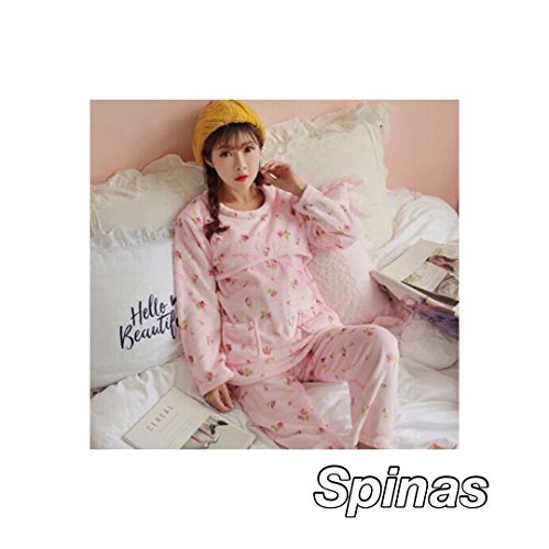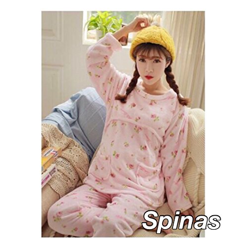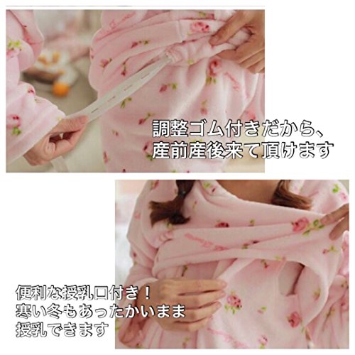 Spinas スピナス マタニティー 授乳服 授乳口 付き フリース あったか パジャマ ルームウェア もこもこ 産前 産後 調節 裏 起毛 裏起毛 ボア ガーリー 花 かわいい 冬 ピンク ブルー 前開き (XL, ピンク)