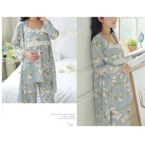 Spinas(スピナス) マタニティ 清楚な花柄3点セット セットアップ ルームウェア 部屋着 パジャマ 乳服口付き 大人上品 大人かわいい服 4タイプ