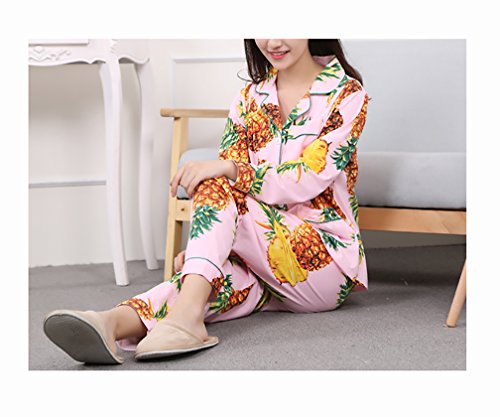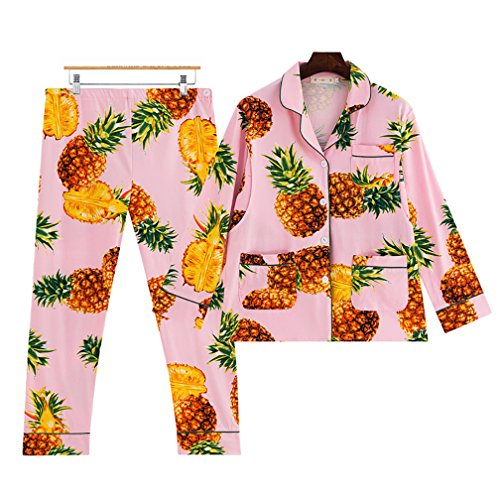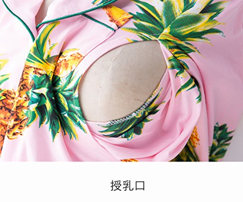 Spinas (スピナス) マタニティ レディース トロピカルな パイナップル柄 パジャマ 授乳口付 ウエスト 調整機能付き ルームウェア 部屋着 前開き 産前 産後 上下セット
