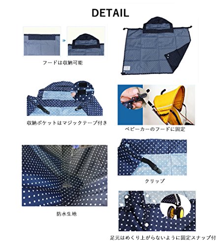 Spinas(スピナス)ベビーカー 抱っこ紐 に 装着 レインカバー 急な雨にも安心 コンパクト に 携帯 できる 防水 ケープ カバー 収納巾着 付き ドット 水玉 ネイビー 濃紺