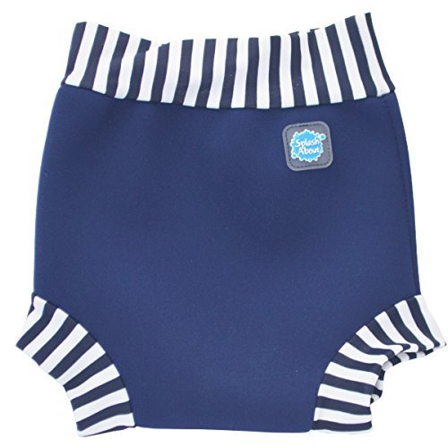 - Splash About Kids Reusable Swim Happy Nappy - Navy/White Stripe Rib, Medium, 3-8 Months