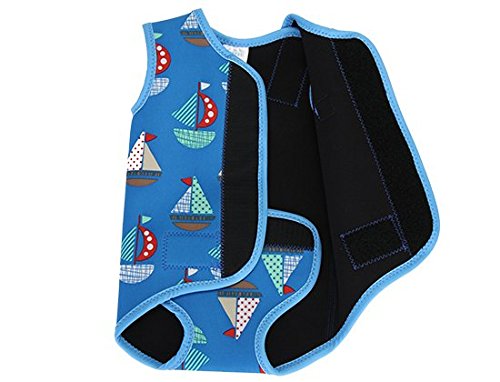- 【スプラッシュアバウト】スプラッシュアバウトは25年以上もベビーやキッズの水着を開発し続けてきた、英国の水着ブランドです。その機能性の良い商品は、英国の90%以上のスイミングスクールから選ばれるなど、お子様のより充実したスイミングライフを求める世界中のパパとママから応援されています。【ベビーラップ】「水の中でベビーの体温を保つ保温水着がほしい」と言うスイミングスクールからの願望に応えて作られたウエットスーツです。<保温性>ベビーラップは最高品質のネオプレン素材で作られており、保温性に優れております。ネオプレン素材とはウエットスーツに使用される素材で、保温性に優れているのはもちろん、強度やクッション性、伸縮性にも優れているので、赤ちゃんも動きやすく、また安心して着用できます。赤ちゃんはまだ自分で熱をつくれないので、保温性の高い水着で寒さから守ってあげることはとても重要です。