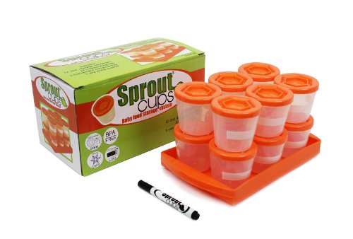 - Baby Food Containers- Sprout Cups - Reusable Stackable Storage Cups (12 Pack) with Tray and Dry-erase Marker - 100% BPA Free (2 Oz)
