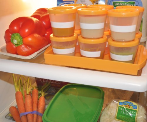 100% BPA and PVC Free - interlocking cups lock to each other AND to their tray., Dry erase function to easily record contents and date (erase prior to Microwaving), Microwave, dishwasher, and freezer safe, Screw on lids to keep food fresh without popping off, Includes twelve stacking 2 ounce cups, tray, and dry erase marker