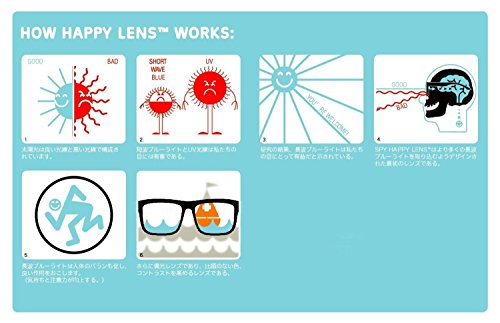A one-two punch of tech and style. Gram for gram, it's the undisputed champion of the outdoors. Features:Constructed from virtually indestructible Grilamid??Features the Happy LensTM3-barrel hinges8x4-base polycarbonate toric lensesHytrelTM rubber nose pads and temple tips100% UV protectionFRAME MEASURES: 59-16-127Includes sunglasses pouch The Spy brand has an obsession for progression. The Spy DNA melds their action-sports heritage and youth energy with an obsession for fashion-forward styling. They are at the intersection of retro-futuristic design and optical innovation.