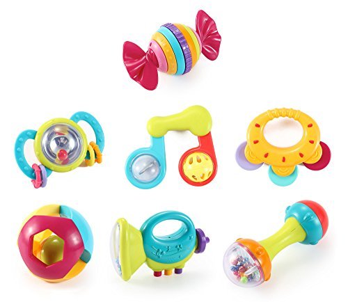 Music Party Fun 7 Piece Baby Rattle and Teether Toy Gift Set in Milk Bottle [並行輸入品]