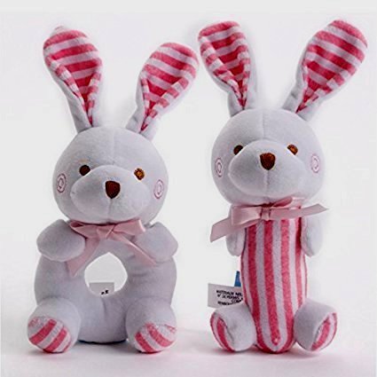 Baby Girl Toys- Soft Rattle and Sqeaker Set- Plush Pink Bunny- Sensory Activity Cute Unique Shower Gifts Idea for Crib- Newborn 0 to 24 months old Infant New Babies Twins [並行輸入品]