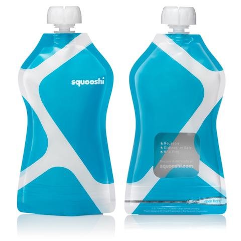 EASIEST POUCH TO USE COOLEST DESIGNS PERFECT SIZE TO HOLD MY KIDS WILL EAT ANYTHING OUT OF A SQUOOSHI as reviewed by parents around the world! Join the Squooshi Family!;EASY TO USE - Our straight forward shape with a top spout and wide bottom zipper allow you to easily fill your Squooshi pouches with your favorite squishy food by using a regular spoon or pour directly into the pouch from your blender of choice. Seal & Go!;EASY TO CLEAN - Wash by hand with warm soapy water and a bottle brush or place in the top rack of your dishwasher. Bottom zipper & rounded shape allows for a complete rinse of water to stream through pouch. Bottom zipper allows for pouch to be fully opened to air dry. No corners or cracks for food to get stuck.;BETTER FOR THE PLANET - Squooshi resealable food pouches use less fuel in shipping than do pre-packaged food-filled pouches, and they are reusable, so they save energy and reduce waste, air pollution, and global warming.;SIP'N TOPS ARE LOVED by babies transitioning to solids or for older kids with smoothies on the go!