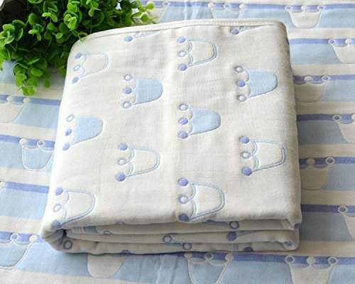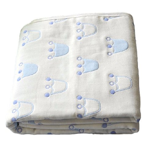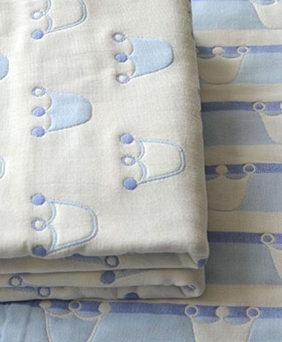 Sta.ANA(サンタ・アナ)ベビーケット 王冠 柄 リバーシブル ガーゼケット ガーゼタオル ベビー用 赤ちゃん ブランケット バスタオル おくるみ かるふわ 出産祝い 110×110cm 正方形 選べる3カラー (ブルー)