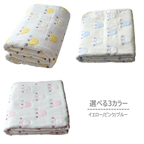 ベビーケット 王冠 柄 リバーシブル ガーゼケット ガーゼタオル ベビー用 赤ちゃん ブランケット バスタオル おくるみ かるふわ 出産祝い 110×110cm 正方形 選べる3カラー