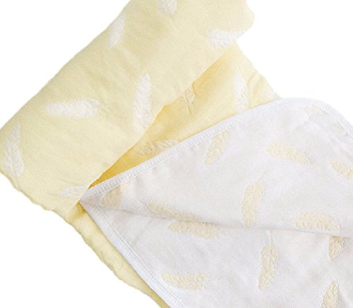 Sta.ANA(サンタ・アナ)ベビーケット 羽 柄 リバーシブル ガーゼケット ガーゼタオル 5重 ベビー用 赤ちゃん ブランケット バスタオル おくるみ かるふわ 出産祝い 105×115cm 選べる3色 (イエロー)