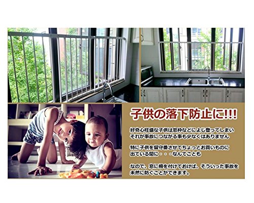※窓用落下防止柵は、窓枠にネジ等で固定する