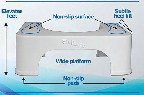 Provides the proper squatting posture to help relieve straining, constipation, hemorrhoids, IBS;Step and go is the 1 recommended brand by doctors & colon hydro therapists;Quality made, fits all toilets (7 height), most comfort, and it works;Makes a great gift, buy step and go double pack and save more, Get step and go for better health