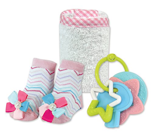 - Stephan Baby Wash Cloth, Socks and Ring Rattle Gift Set, Pink and Turquoise Chevron, 0-6 Months