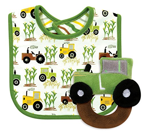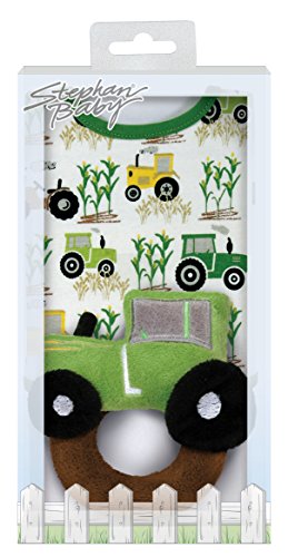 Stephan Baby Down on The Farm Bib and Plush Ring Rattle Gift Set, Tractor by Stephan Baby