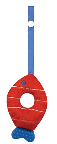 Colorful fishy teether is made from velvety velour plush, has an easy-to-grasp doughnut-shaped body and is lined with crinkly fabric so it's fun to hold, plush body measures approximately 4.33 x 3.5 x 0.8;The teether tail is designed with baby's front teeth in mind and has a gently textured surface to soothe tender gums, teether tail measures approximately 2 x 1.25 x .12;Teether tail is made from BPA-free poly plastic, no sharp edges or painted surfaces, teether can be snapped onto a car seat, highchair or stroller, ribbon strap measures approximately 6 long when snapped;100% polyester fabric construction and 100% polyester fill, machine wash cold on gentle cycle, lay flat to dry, do not bleach;Since 1987, Stephan Baby has been creating unique and heartwarming gifts for little ones