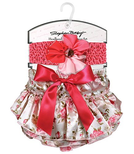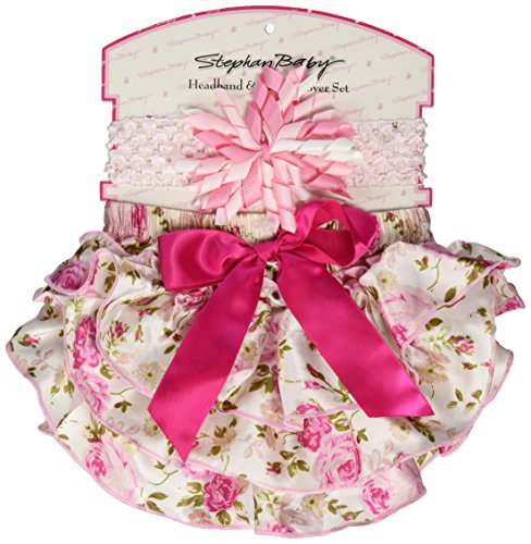 - Stephan Baby Ruffled Diaper Cover and Curly Band Gift Set, Pink Roses, 6-12 Months
