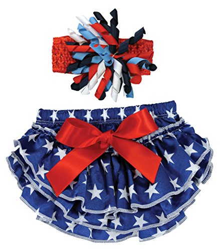 - Stephan Baby Stars and Stripes Ruffled Diaper Cover and Curly Bow Headband, 12-18 Months