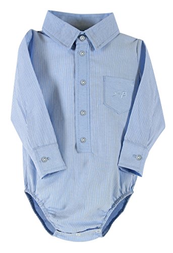 6-12 month size Oxford cloth diaper cover has handsome dress shirt styling and plenty of snaps for quick and easy diaper changes;Handsome blue and white snap shirt is accented with solid blue Oxford cloth collar, cuffs, pocket and front placket;Snap shirt-style diaper cover features a traditional pleated back and an extra-roomy bottom to accommodate baby's diaper;100% cotton Oxford cloth; machine wash cold and tumble dry low; remove promptly; do not bleach;Since 1987, Stephan Baby has been creating unique and heartwarming gifts for little ones
