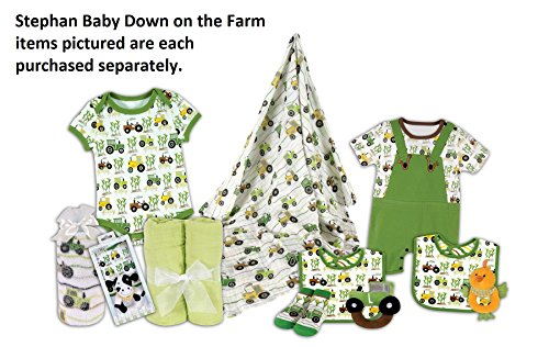6-12 month size Down on the Farm snap shirt-style diaper cover takes your little one from diapered to dressed in no time;Soft and comfortable knit all-in-one features colorful tractors working in the corn fields;Snap shirt-style diaper cover is nicely banded at the neck, sleeves and leg openings with contrasting green cotton knit;100% cotton construction; machine wash cold and tumble dry low; remove promptly; do not bleach;Since 1987, Stephan Baby has been creating unique and heartwarming gifts for little ones