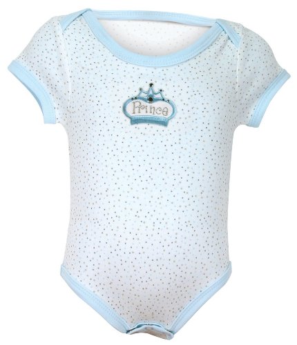 Diaper cover, onesie or snap shirt; no matter what you call it, Stephan Baby's cute-as-can-be Little Prince all-in-one diaper cover will get your little one ready for the day in kingly style. The all-in-one cover has snaps in all the right places, is fashioned of soft, snowy cotton knit playfully scattered with pastel pin dots and features a beautifully embroidered blue and white crown motif regally accented with crystal embellishments; contrasting blue cotton knit binding at the neck and leg openings adds a handsome finishing touch. And, because even royalty has been known to be a festival of urps, burps and blats, the all-in-one diaper cover is machine washable and dryable. Since 1987, Stephan Baby has been dedicated to fine quality, unique and heartwarming gifts that celebrate the magic of baby's first year. The Stephan Baby family invites you to discover their inspired collections of blankets, gift sets, charming apparel and accessories, beautiful keepsakes and oh-so-huggable plush animals, available on Amazon. All Stephan Baby products are CPSIA tested and approved.