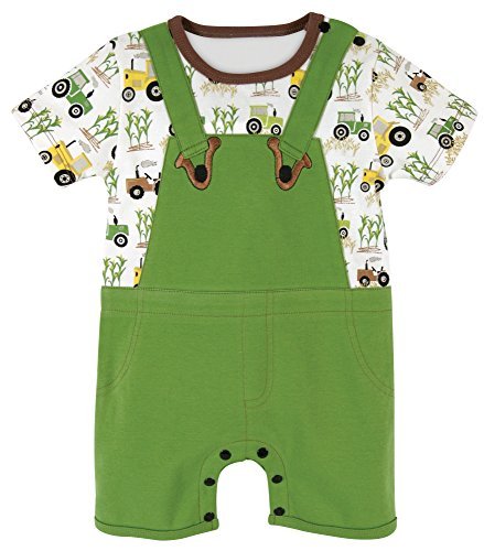 Stephan Baby Romper/Overall-Style Down on The Farm Tractor Diaper Cover Green/White/Yellow 3-6 Months [並行輸入品]