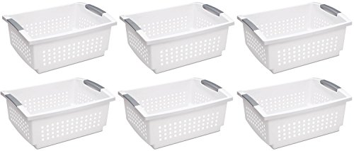 Sterilite 16648006 Largeホワイトスタッキングバスケットwithチタンアクセント、6パック