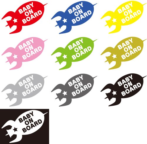 とってもかわいいロケット型のステッカーです Baby in carのデザインは豊富ですが、Baby on boardのデザインってあまりみませんよね! 個性的なステッカーで目立っちゃいましょう! 色の付いている部分がシールとして残るタイプです。画像の白い部分は抜いてあります。
