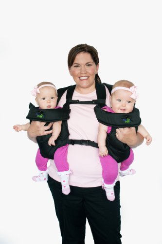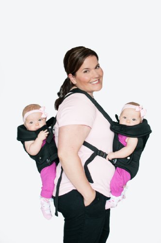 Wider base makes it more comfortable for your twins to sit;New design makes getting babies in and out easier;Holds two babies;Can be worn in 5 different positions;Holds two babies (7-25 pounds each)