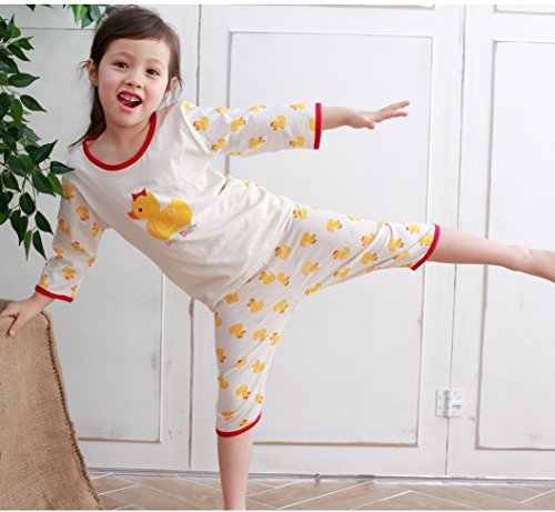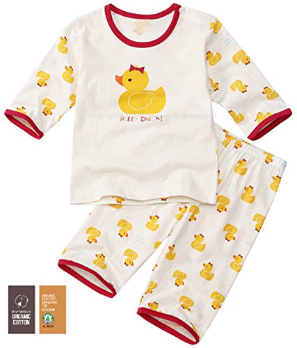 【あるこんたるこん】 オーガニックコットン ベビー キッズ ジュニア ルームウェア アヒル 女の子 パジャマ 7分袖 ハーフパンツ (100)