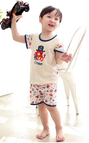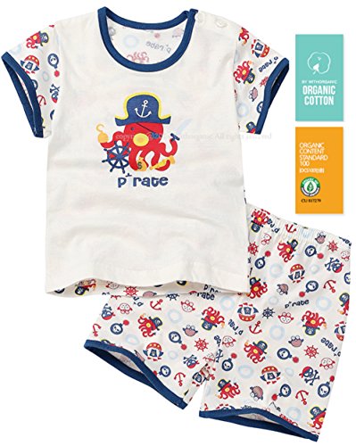 【あるこんたるこん】 オーガニックコットン ベビー キッズ ルームウェア キャプテン 男の子 パジャマ 3分袖 ショートパンツ (100)