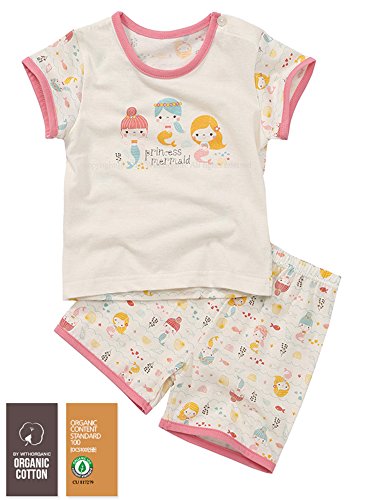 【あるこんたるこん】 オーガニックコットン ベビー キッズ ルームウェア アリエル 女の子 パジャマ 3分袖 ショートパンツ (100)