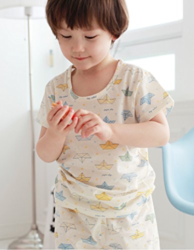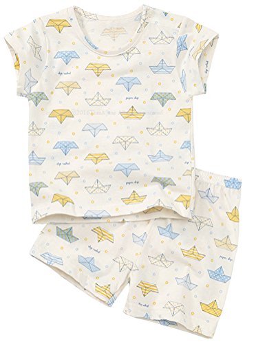【あるこんたるこん】 ナチュラルコットン ベビー キッズ ジュニア ルームウェア ペーパーシップ 男の子 パジャマ 3分袖 ショートパンツ (110)