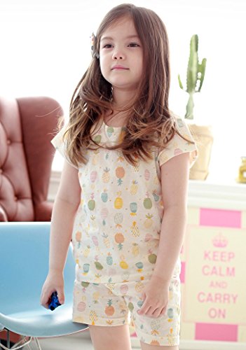 【あるこんたるこん】 ナチュラルコットン ベビー キッズ ジュニア ルームウェア ペイン 女の子 パジャマ 3分袖 ショートパンツ(80)