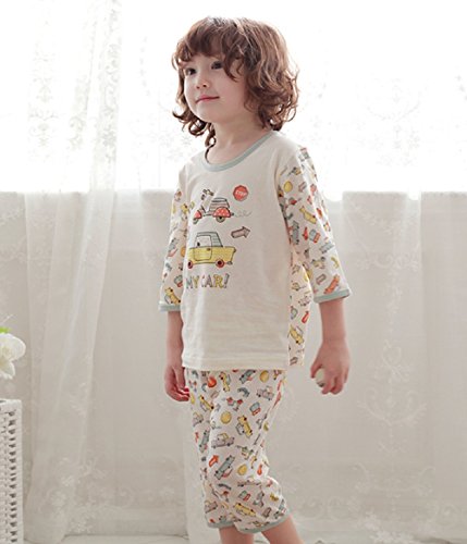 【あるこんたるこん】オーガニックコットン ベビー ルームウェア マイカ キッズ 7分袖 ハーフパンツ ジュニア 男の子 パジャマ (100)